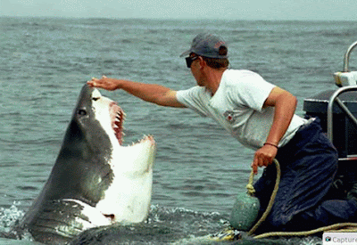 (野生動物保護法禁止捕撈鯊魚),不管他去哪兒,這隻大白鯊就一直跟著他,還嚇跑了其他的魚。